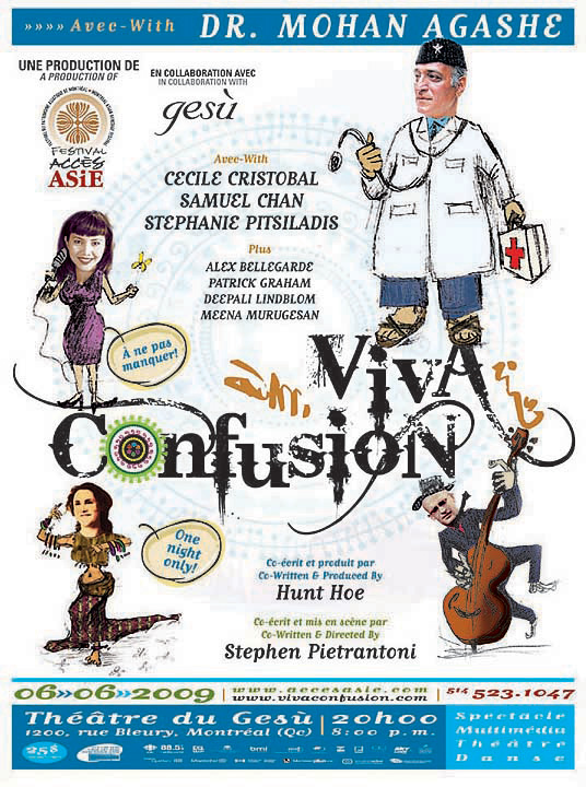 Starring the prominent Indian actor and psychiatrist Dr Mohan Agashe, the show fuses doctor/patient relations and multi-disciplinary Montreal artists in an unforgettable experience. Using documentary footage of interviewers with "real life" Asian-Canadians by descent or affiliation around the themes of identity, ancestry, assimilation and allegiance, Dr Agashe counsels using an unorthodox dose of dance, jazz and comedy with a distinct East-West masala.